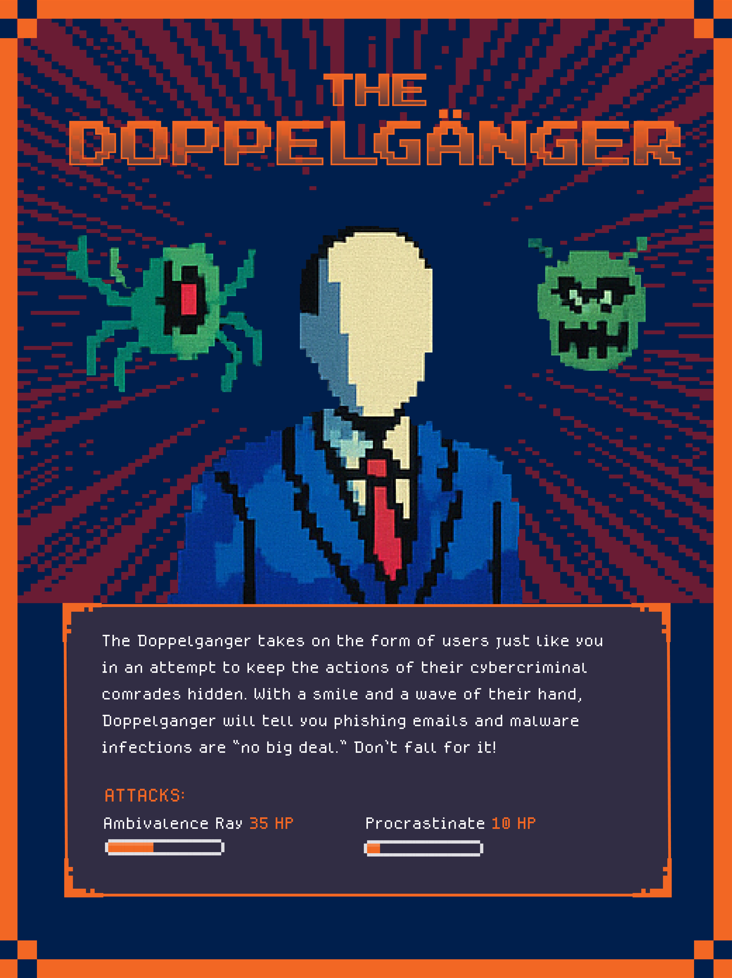 Meet The Doppelgänger! This is a cyber trickster who doesn’t hack computers. He hacks people. Through emails, texts, phone calls, or even face-to-face conversations, social engineers use trust, fear, and urgency to trick you into giving up passwords, clicking links, or letting them in the door.